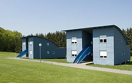 The Blue Chalets with their 6 4-bed rooms and 1 single each, closed to the Vita Hall of Residence are established in a green calm framework.