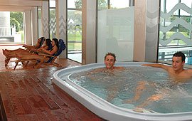 Relaxation room with its jacuzzi, Turkish bath and sauna
