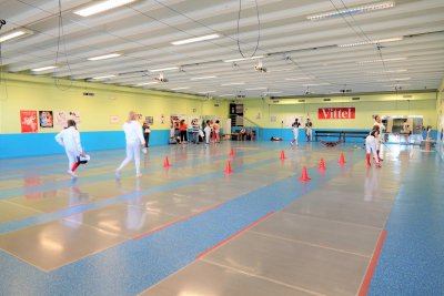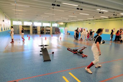 La salle d'armes est dotée de 6 pistes en duraluminium avec appareillage électrique de marquage des touches.