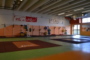 Cette salle est constituée de sept zones spécifiques pour les différents mouvements d'haltérophilie, et est adaptée pour des séances de renforcement musculaire.